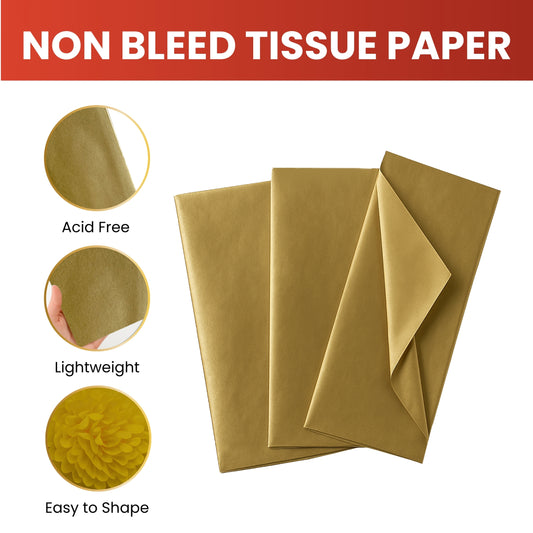 Pack of 10 Metallic Gold Acid Free 50 x 70cm Tissue Paper Sheets