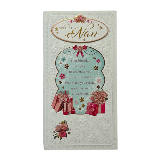 For Nanna Teddy With Gifts And Flowers Design Birthday Card