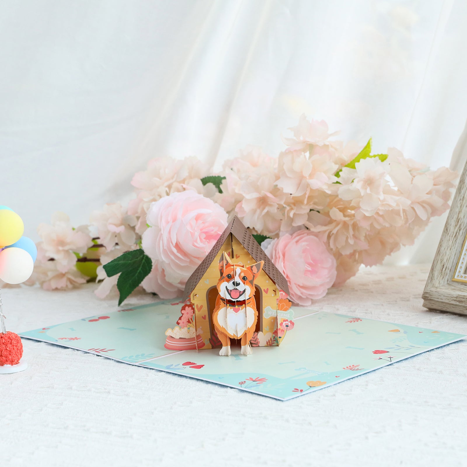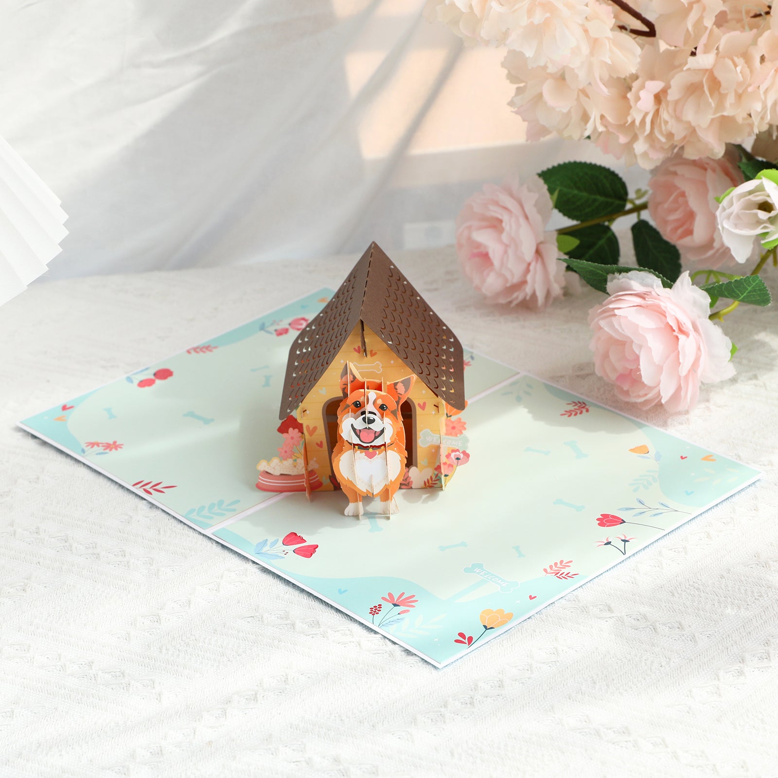Dog in Doghouse 3D Pop Up Greeting Card - Puppy Pet Birthday Vacation Anniversary Love Mother