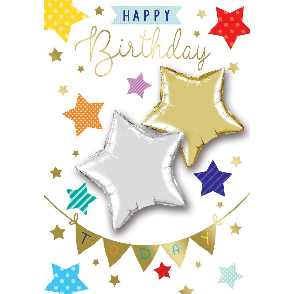 A contemporary foil finished greeting card by Balloon Boutique. Air fill only (not suitable for helium). Includes 2 Foil Balloons, straw for inflating balloons. 2m Ribbon for handing balloons. Unsuitable for helium. Size of card 190x130mm. Message inside: Wishing you a very Happy Birthday.