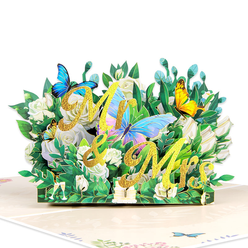 Mr & Mrs with Floral Accents Romantic Pop Up Wedding Congratulations Card