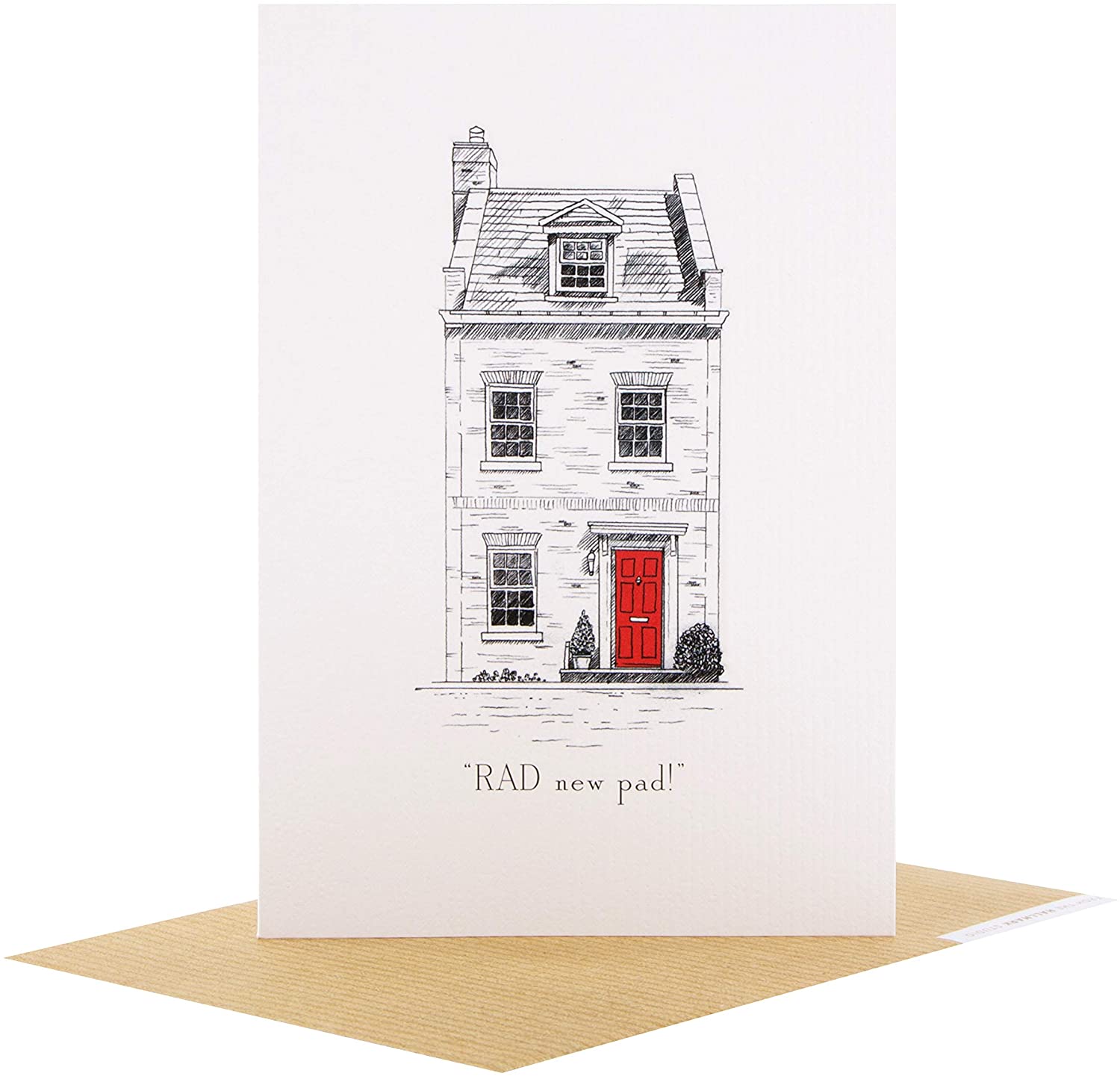 This stylish new home card from the Hallmark Studio is the perfect way to send your congratulations on their new pad. Embossed design on textured card. Co-ordinating 'from the Hallmark Studio' Branded envelope. Message reads: front: rad new pad! Inside: blank for your own message. Measure 17.3cm by 11.9cm, within Standard UK 'Letter' Size limits