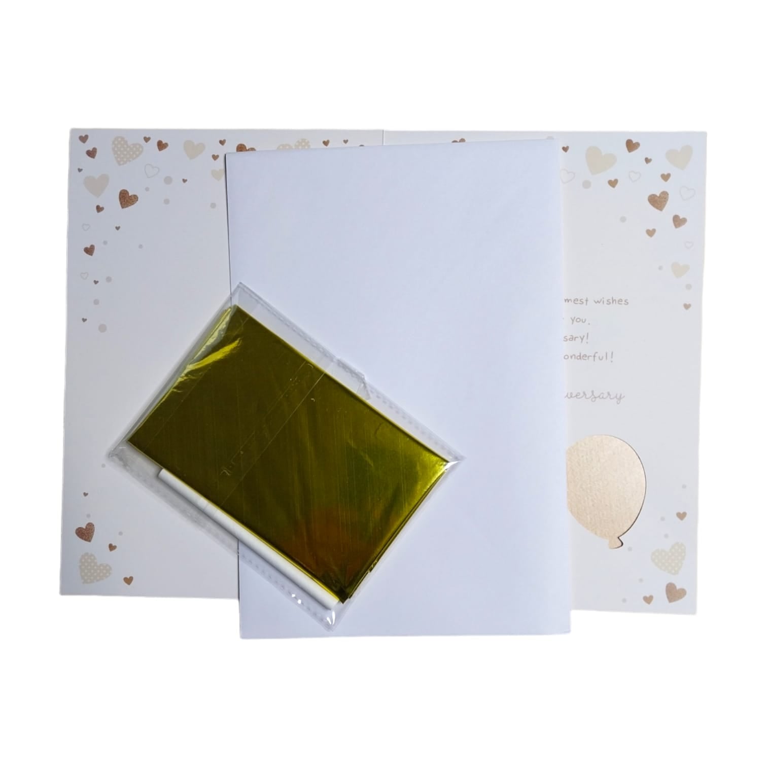 Celebrate Your Anniversary of love and companionship with our "On Your Anniversary" Congratulations Balloon Boutique Greeting Card. This contemporary masterpiece features exquisite foil finishing, adding a touch of elegance to your heartfelt wishes. Included within this thoughtfully designed card are two foil balloons, each meticulously shaped into shimmering gold hearts, symbolizing the enduring love and commitment shared between you and your beloved. To inflate the balloons, a convenient straw is provided, ensuring hassle-free preparation. Additionally, a 2-meter ribbon is included for effortlessly suspending the balloons, adding a delightful touch to your anniversary celebrations. These balloons are designed for air filling only, as they are unsuitable for helium. This ensures their longevity and stability, allowing you to enjoy their beauty for days to come. The card itself measures 230x150mm. On Your Anniversary Congratulations Balloon Boutique Greeting Card, you can elevate your anniversary festivities and express your love in a truly memorable way. Let this exquisite ensemble of balloons and card serve as a timeless memento of your enduring bond and cherished memories together.