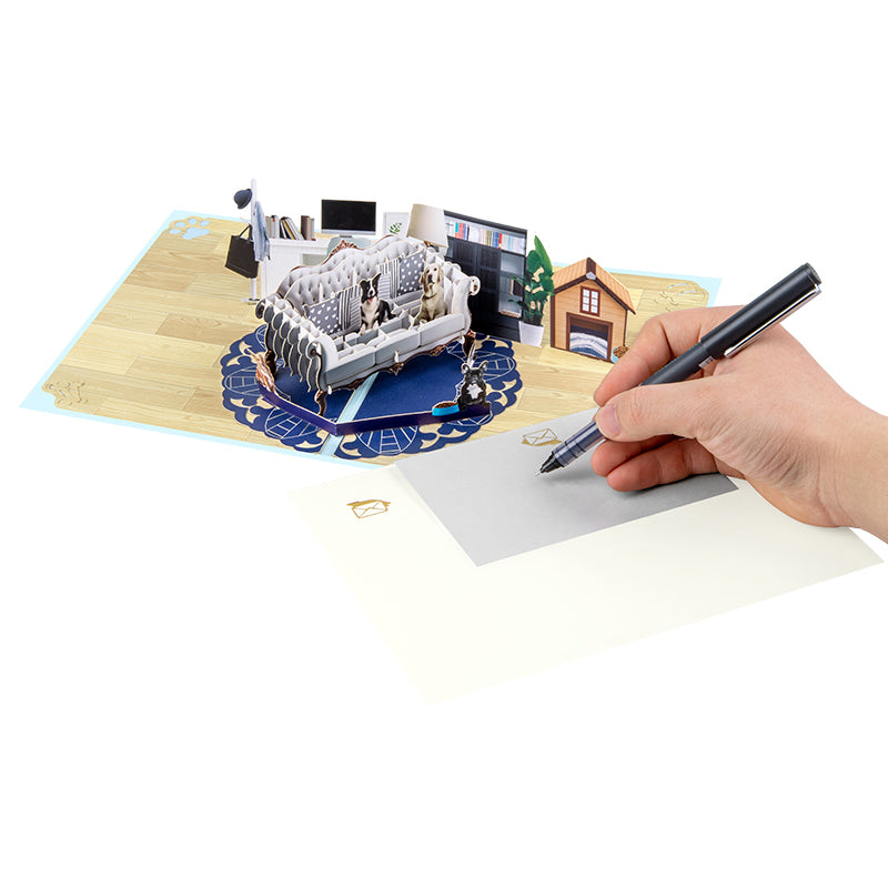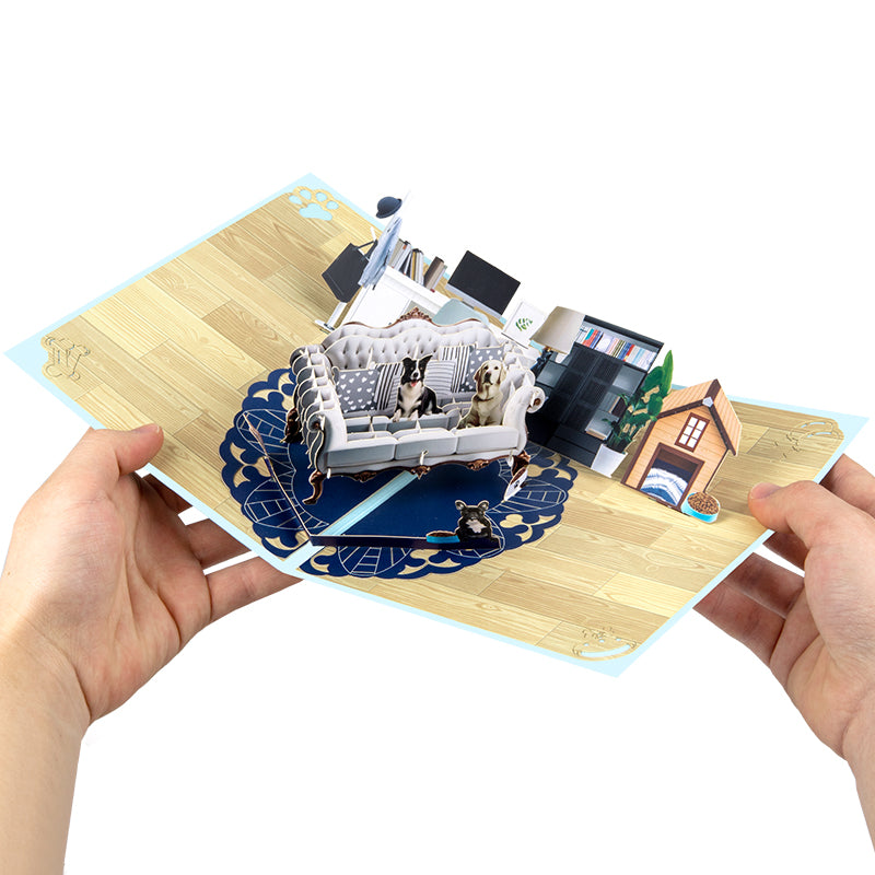 Sofa Snuggles Cozy Dog Scene 3D Pop Up Greeting Card