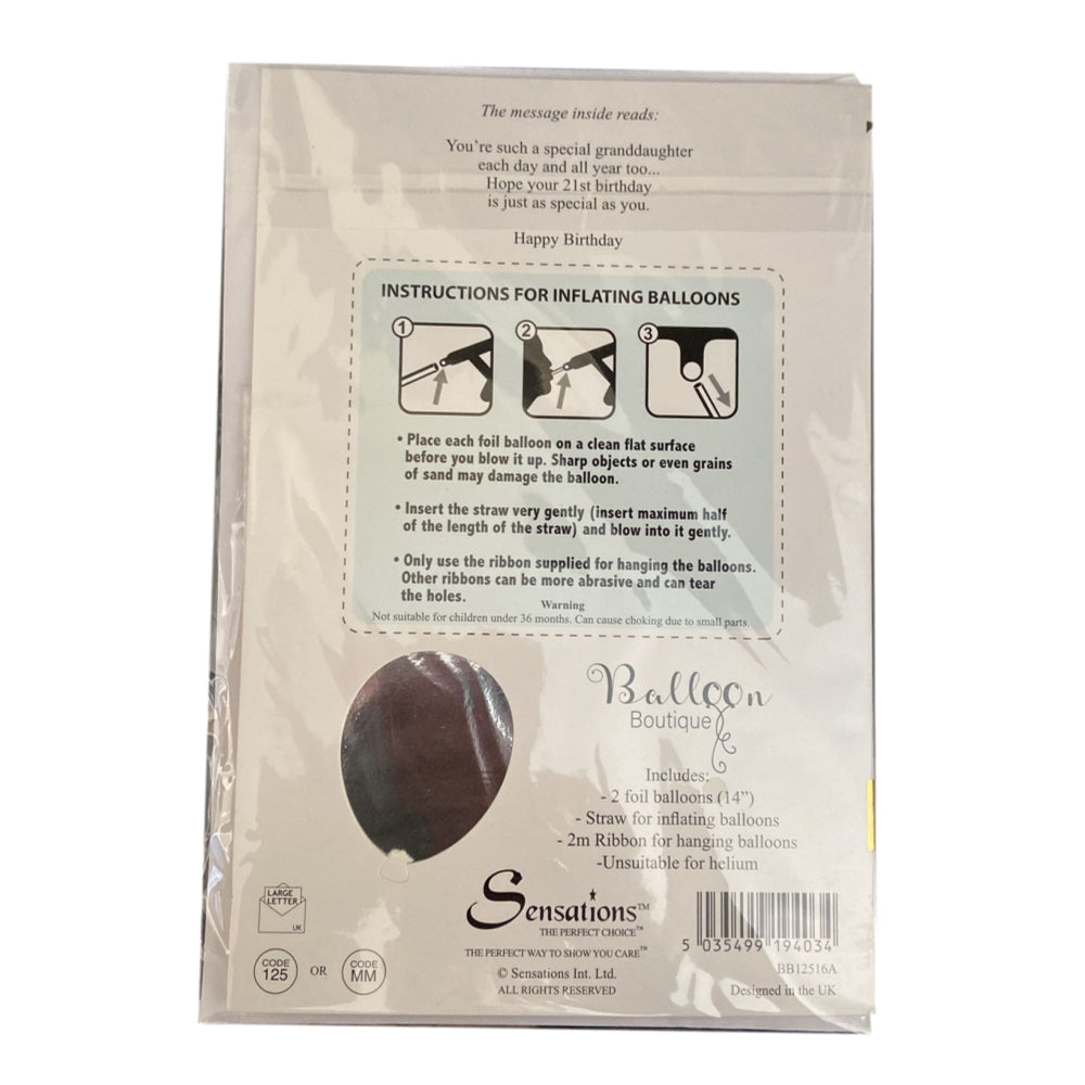 - To A Special Granddaughter You're 21 Balloon Boutique Greeting Card