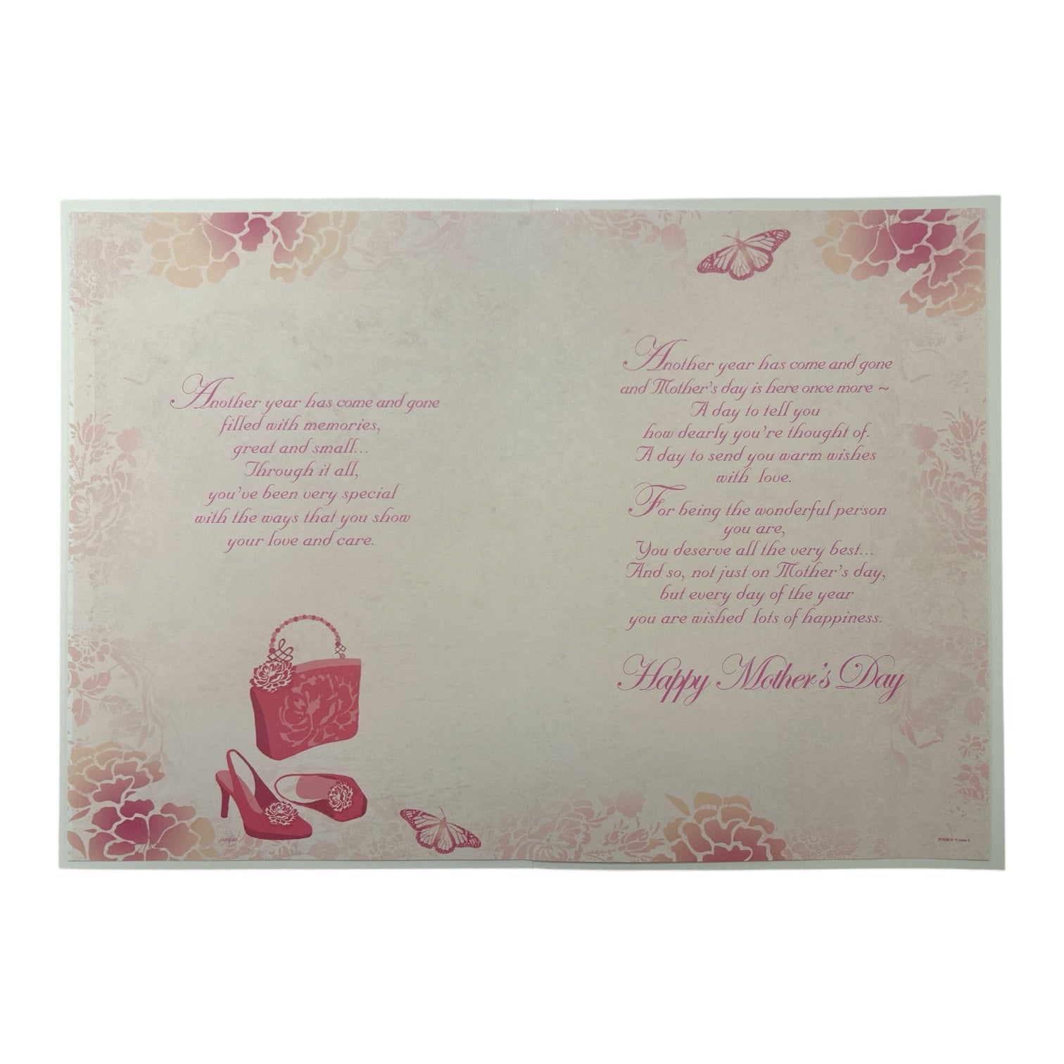 This Mother’s Day greeting card features an elegant pink dress with a floral pattern and glitter details, gracefully hanging on a decorative room divider. The soft beige background is adorned with subtle glitter accents, enhancing the delicate and celebratory aesthetic. The words "Happy Mother's Day" and "With Love, Mum" are elegantly displayed, adding a heartfelt touch to the design. The warm color palette and refined details create a sophisticated and sentimental atmosphere, making this card a beautiful tribute to a beloved mother.