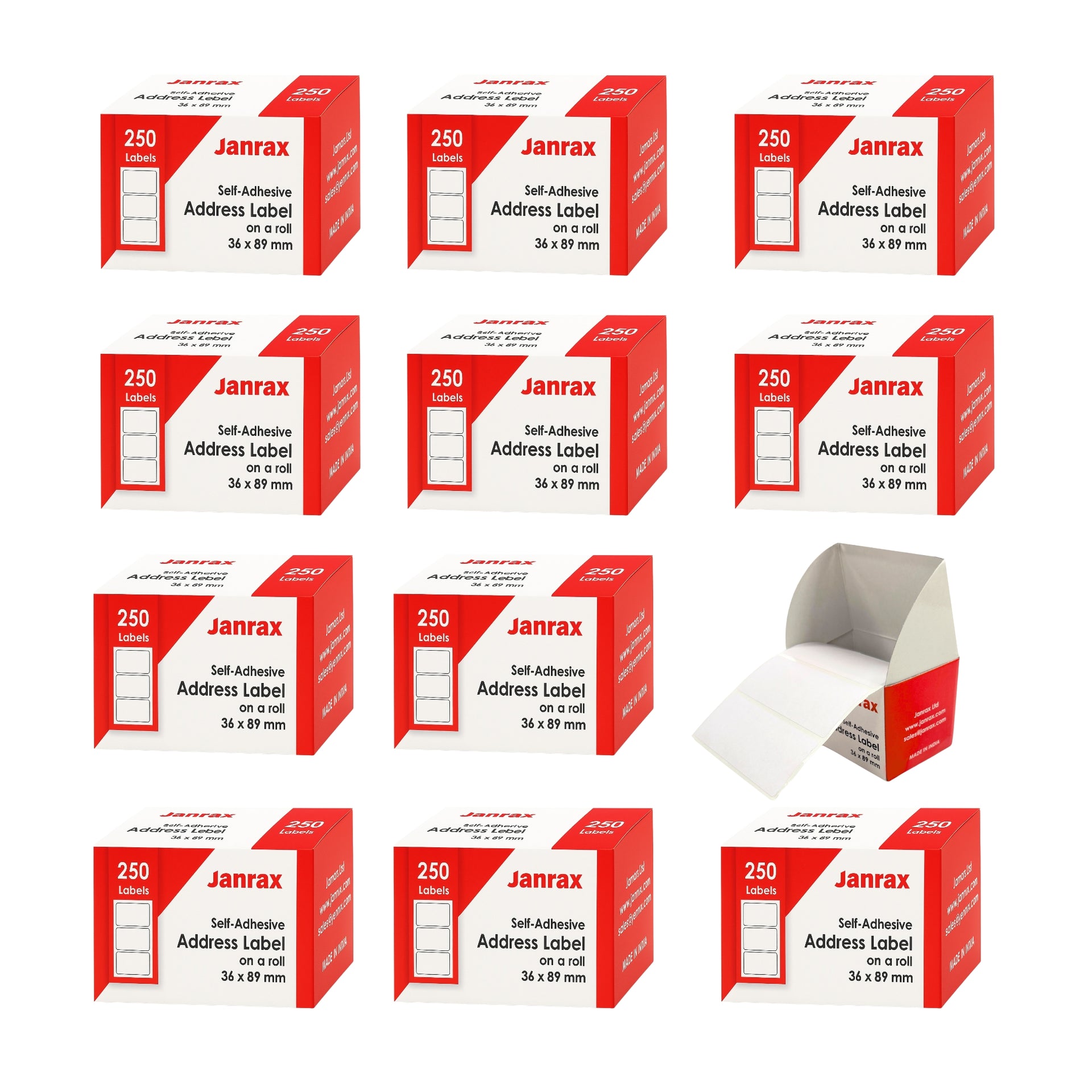 - 12 Rolls of 250 Self Adhesive Address Labels 36x89mm