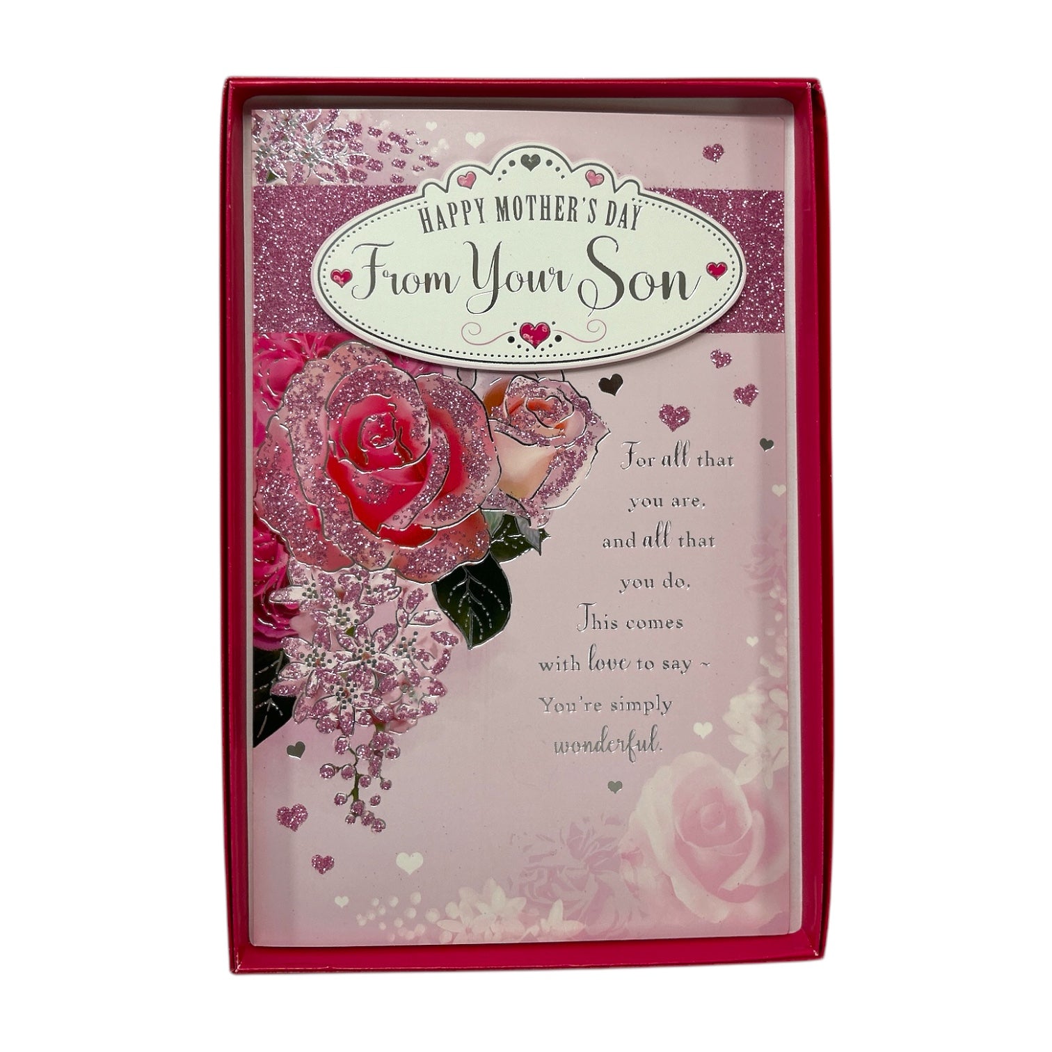 - Happy Mother's Day From Son Beautiful Roses Design Pink Boxed Card