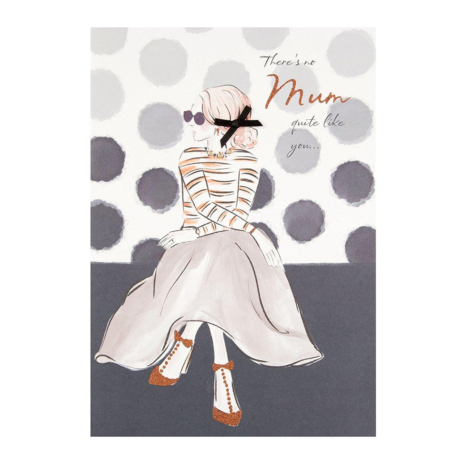 Send Mother's Day wishes to a special Mum with this contemporary card from Hallmark. Finishes: Glitter; Diamante; Ribbon. Includes: Striped Envelope. Royal Mail Postage: Standard Letter Size