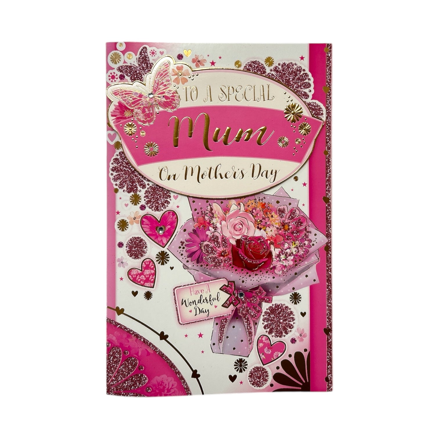 Send your incredible mum all the love in your heart with this adorable Mothers Day card from Xpress Yourself. The perfect way to make her feel extra special and show her just how much you care, today and always. Printed on high-quality board, this card features embossed elements, a paper insert, a stone attachment, foil details and pink glitter finished. The perfect way to make your Mum's Mothers Day extra special and full of love. This card is supplied with Box. Box Card Size Approx. : 29 x 19.5cm.