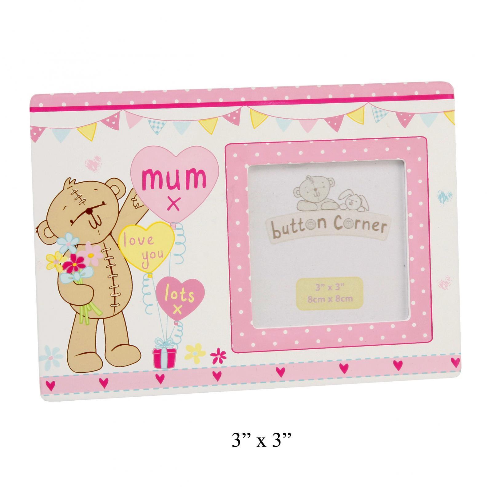 Button Corner MDF Photo Frame Mum. Holds 3x3" Picture.