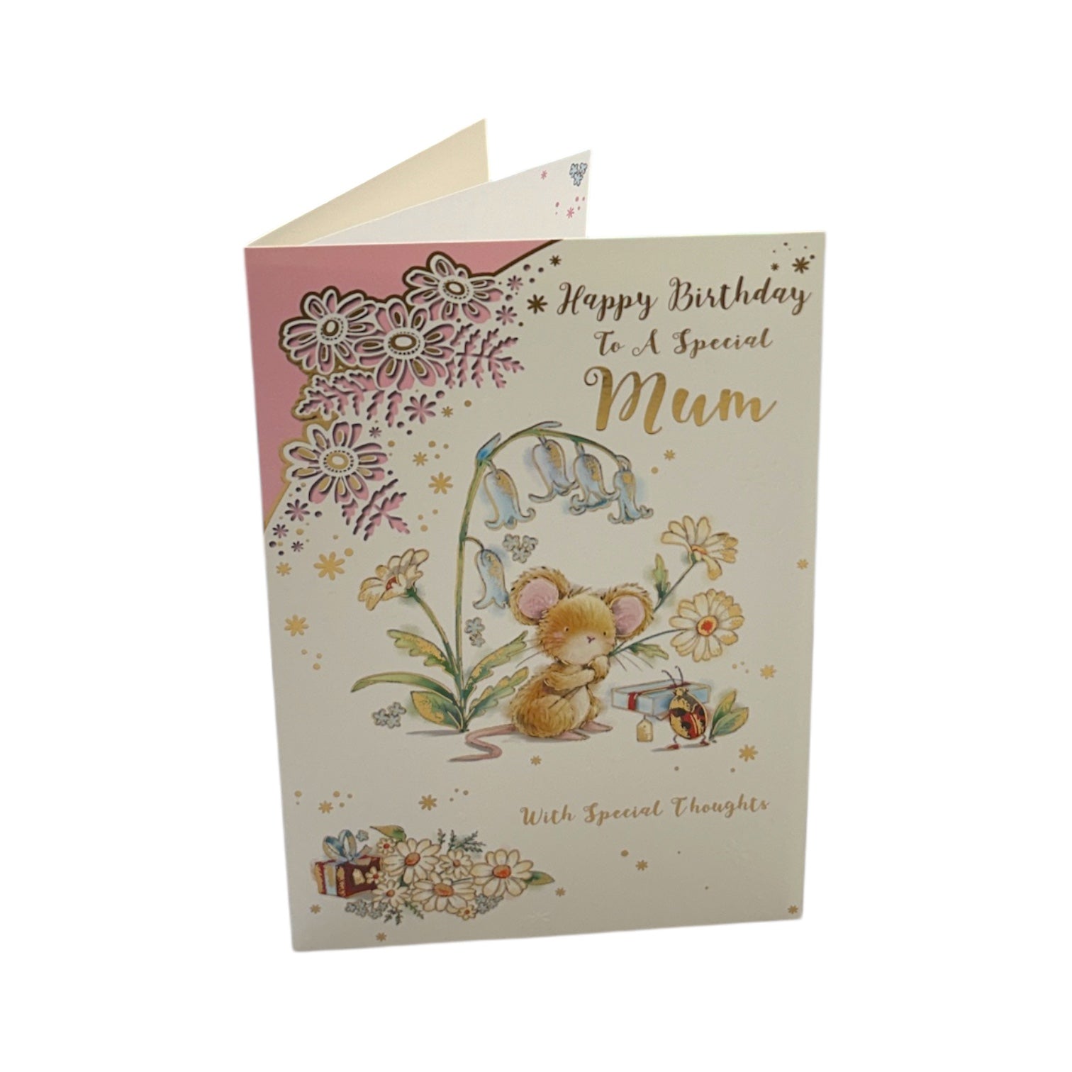 - Special Mum Cute Mouse with Flowers Design Birthday Card