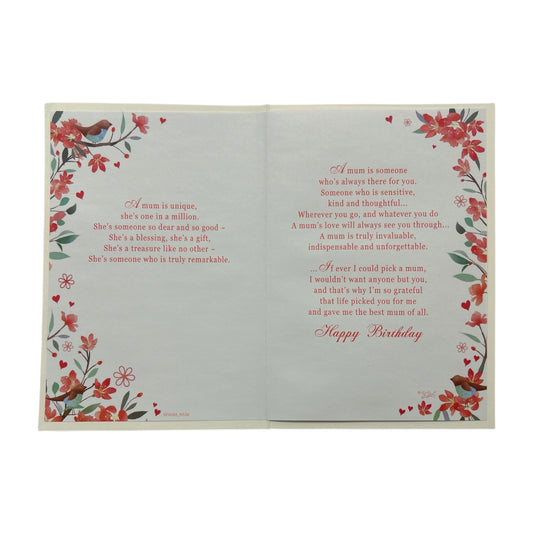 For Mum Lovely Verse Birds on Tree Design Birthday Card