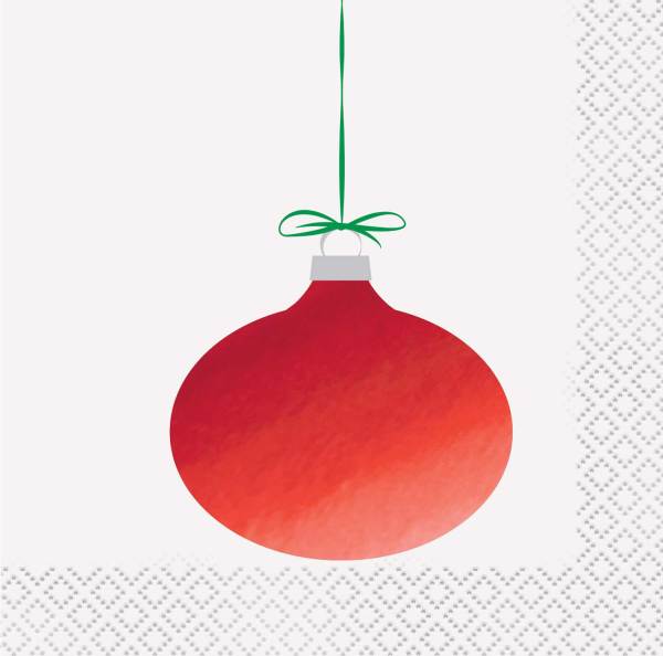 Pack of 16 Red Foil Stamped Ornament Christmas Beverage Napkins. Package Includes: 16 Red Foil Drinks Napkins - 5" x 5" With an elegant red foil ornament. Perfect for Christmas dinner and other Christmas parties. Made from 2-ply paper which is great for cleaning spills and crumbs.