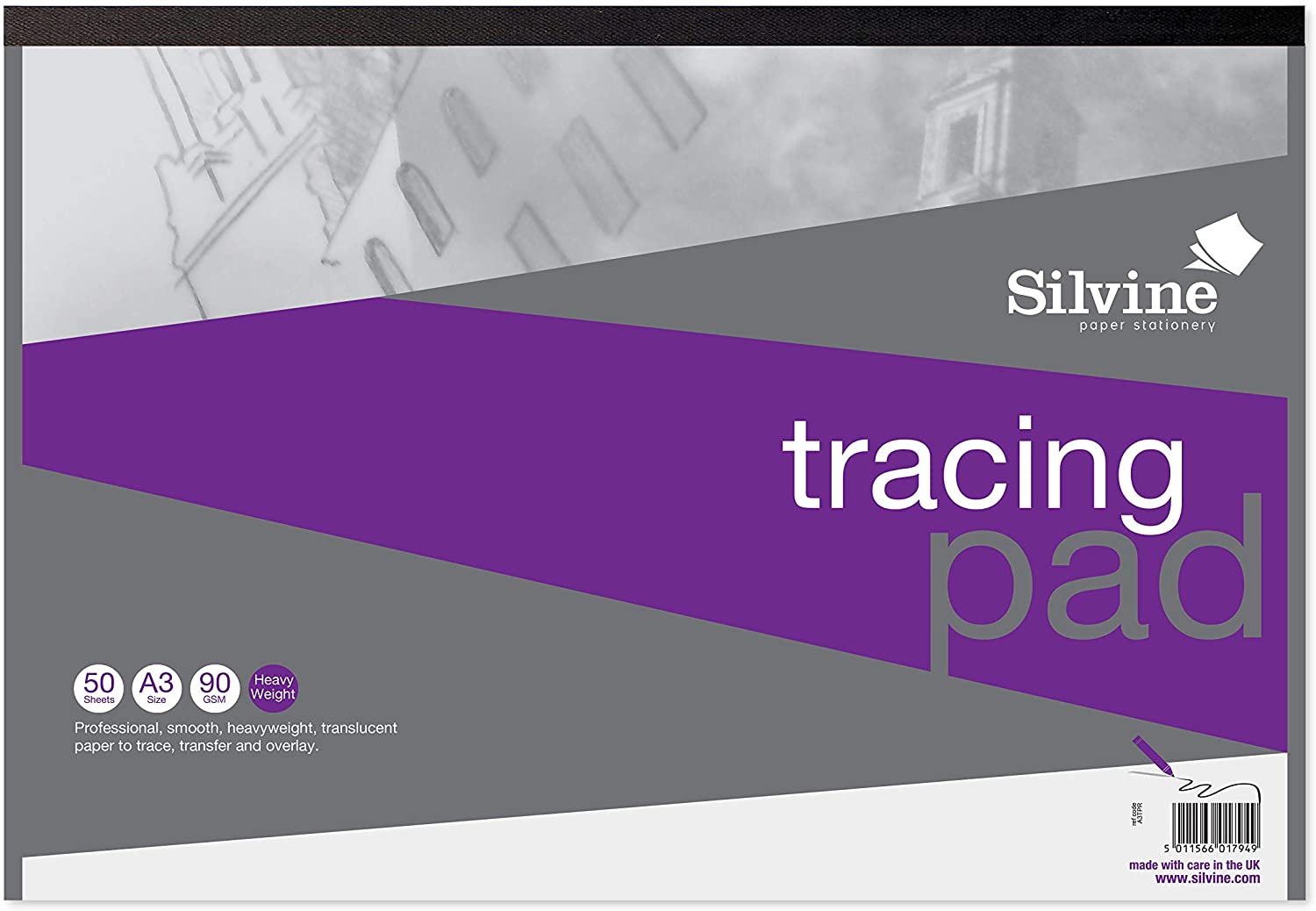A3 50 Sheets Heavyweight Professional Tracing Pad. 90gsm quality heavyweight tracing paper. Trace, transfer and overlay. Easy page removal. Size: A3 (420 x 297mm).