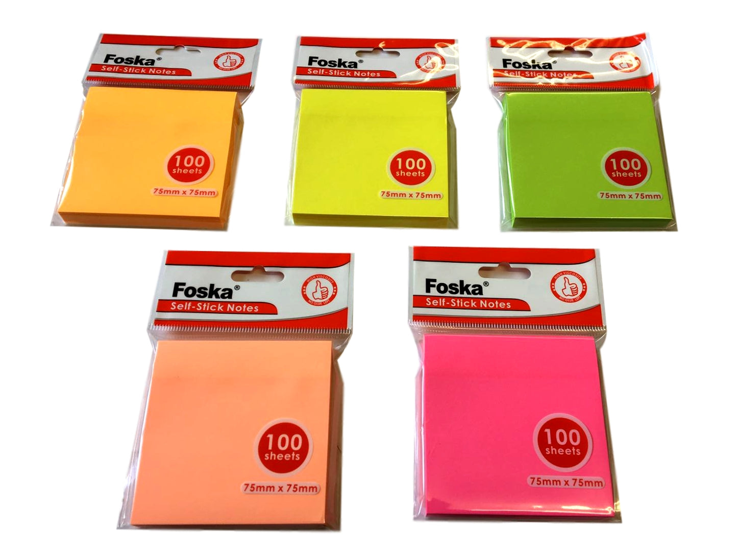 75x75mm Neon Self Sticky Notes - 100 Sheets