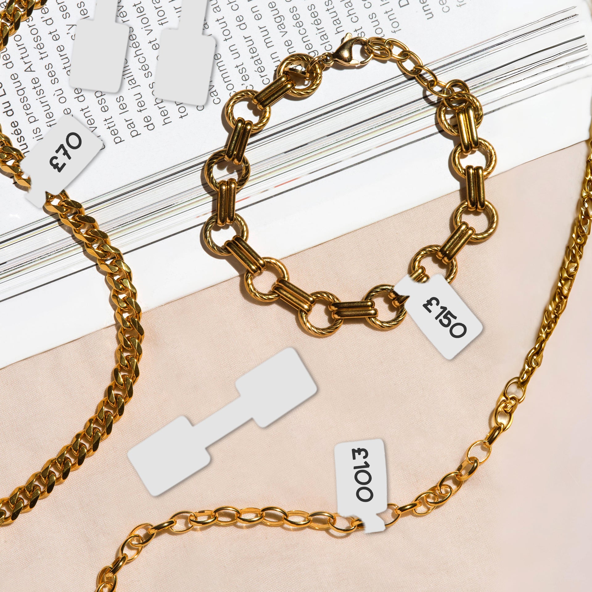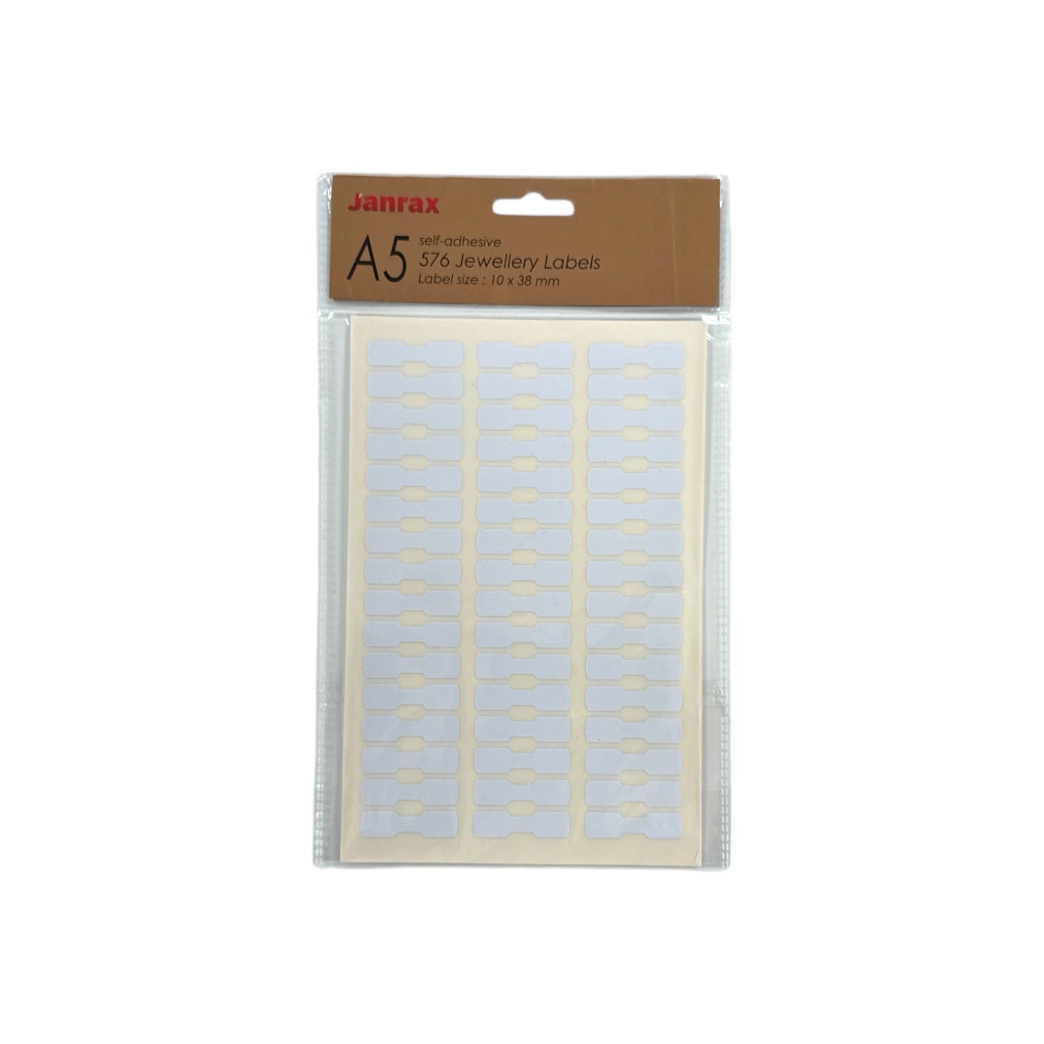 Pack of 576 White Jewellery Labels 10x38mm. Organise and label your jewellery with ease using this pack of 576 white jewellery labels. Each label measures 10x38mm and is designed with a slim shape, perfect for looping around rings, chains, watches, and other small items. Ideal for retail displays, stock management, pricing, or personal organisation. Made from durable, easy-to-write-on material for clear labelling and a professional finish.