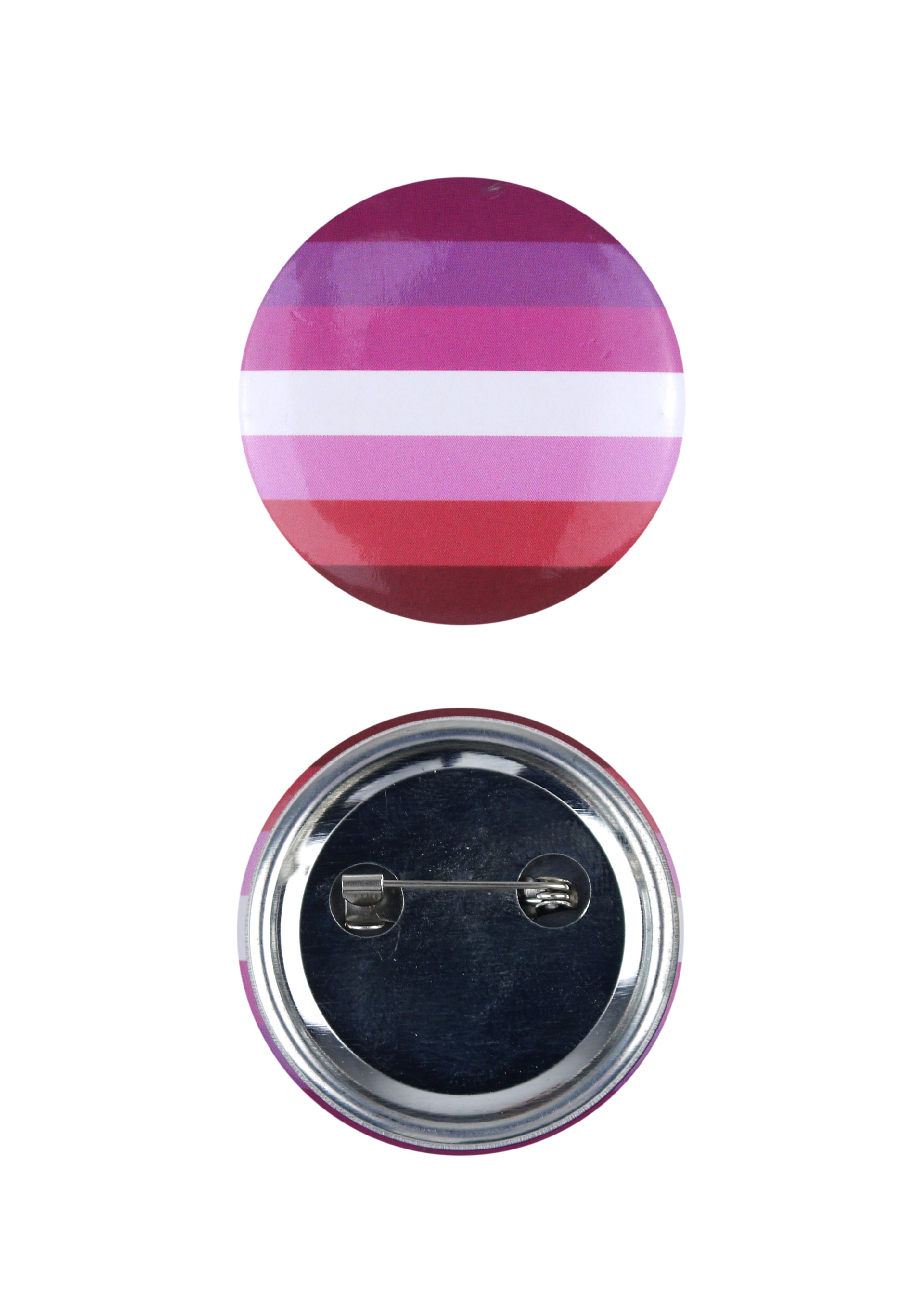 Lesbian Pride Badge 4cm. This lesbian pride badge is an ideal accessory for showing your pride all year round, as well as great for parties, parades, carnivals and marches. Size: 4cm.