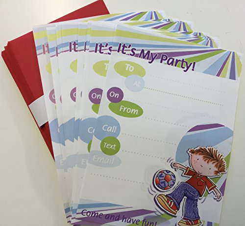 Pack of 20 Children's Cute It's My Party! Notes & Envelopes Football Design