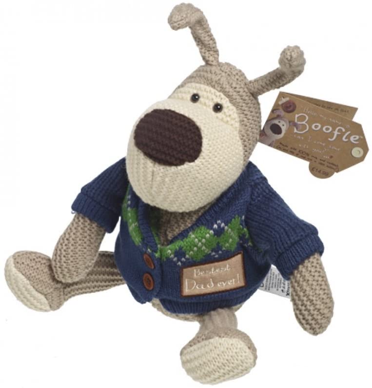 8" Boofle Bestest Dad Soft Toy in a Cardigan.