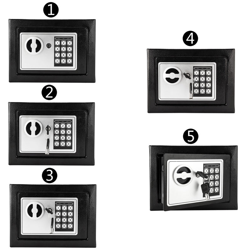 Black Metal Security Code Safe Box. Size: 170 x 230 x 170mm. Material: metal. The Beauty of this safe box is the compact size:23cm x 17cm x 17cm (L&W&H), The weight of the safe box is 2.6kg. This safe is just the right size, It can be used as a money safe for Cash, necklace safe, ring safe, gun safe and other valuables. This highly secure electronic safe has well-designed dimensions and is perfect for home and business use! The 4.6L digital fireproof safe is made from high quality, thickened alloy steel. The double protection is designed to meet fire and burglary regulations and protect your property. This is a secure waterproof and digital fireproof safe. The 3-8 digit combination offers you more than 10,000 possible password combinations. Ensure that your password cannot be cracked and protect your property effectively. The safes come with 2 spare keys, so you can still gain access if you forget your code or the batteries run out.
