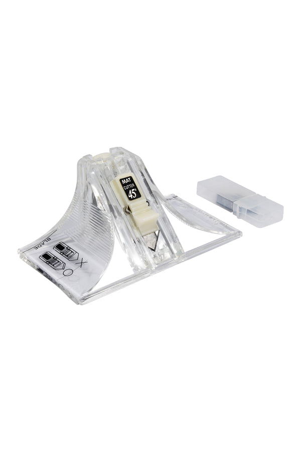 Mount Cutter, with two cutting angles 45 degree´ and 90 degree´ for use with 7321 aluminium ruler. Contains two blades plus three spare blades, cuts materials up to 7mm thick.