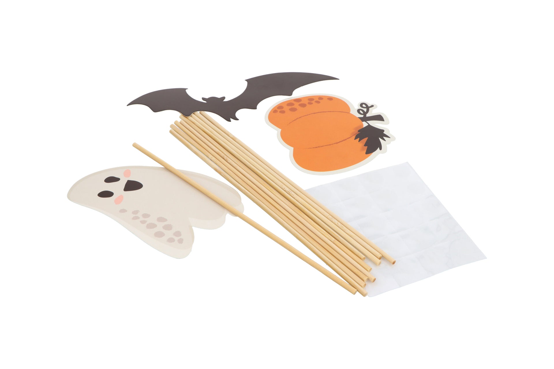 This 10-piece pack of photo props on sticks includes a number of spooky designs, including a ‘Boo!!’ sign and assorted ghosts, ghoulies, bats, and fangs – ideal for any Halloween party photo booth!