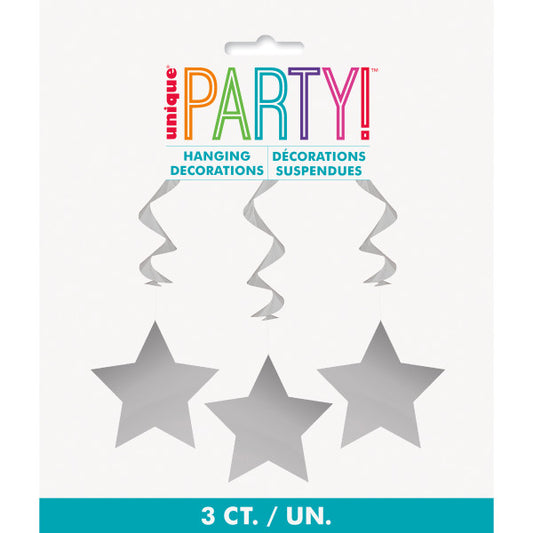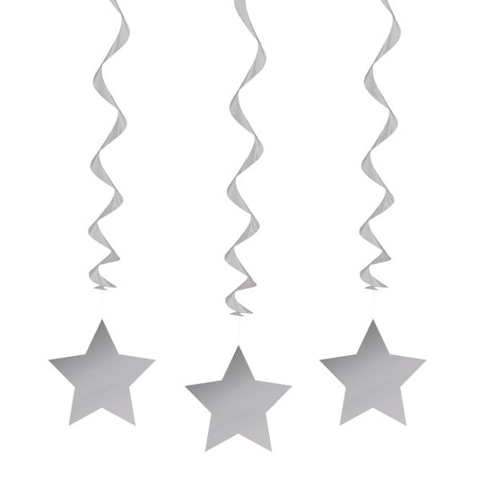 Pack of 3 26" Silver & Gold Star Hanging Swirl Decorations