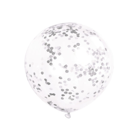 Pack of 6 Clear Latex Balloons with Silver Confetti 12"