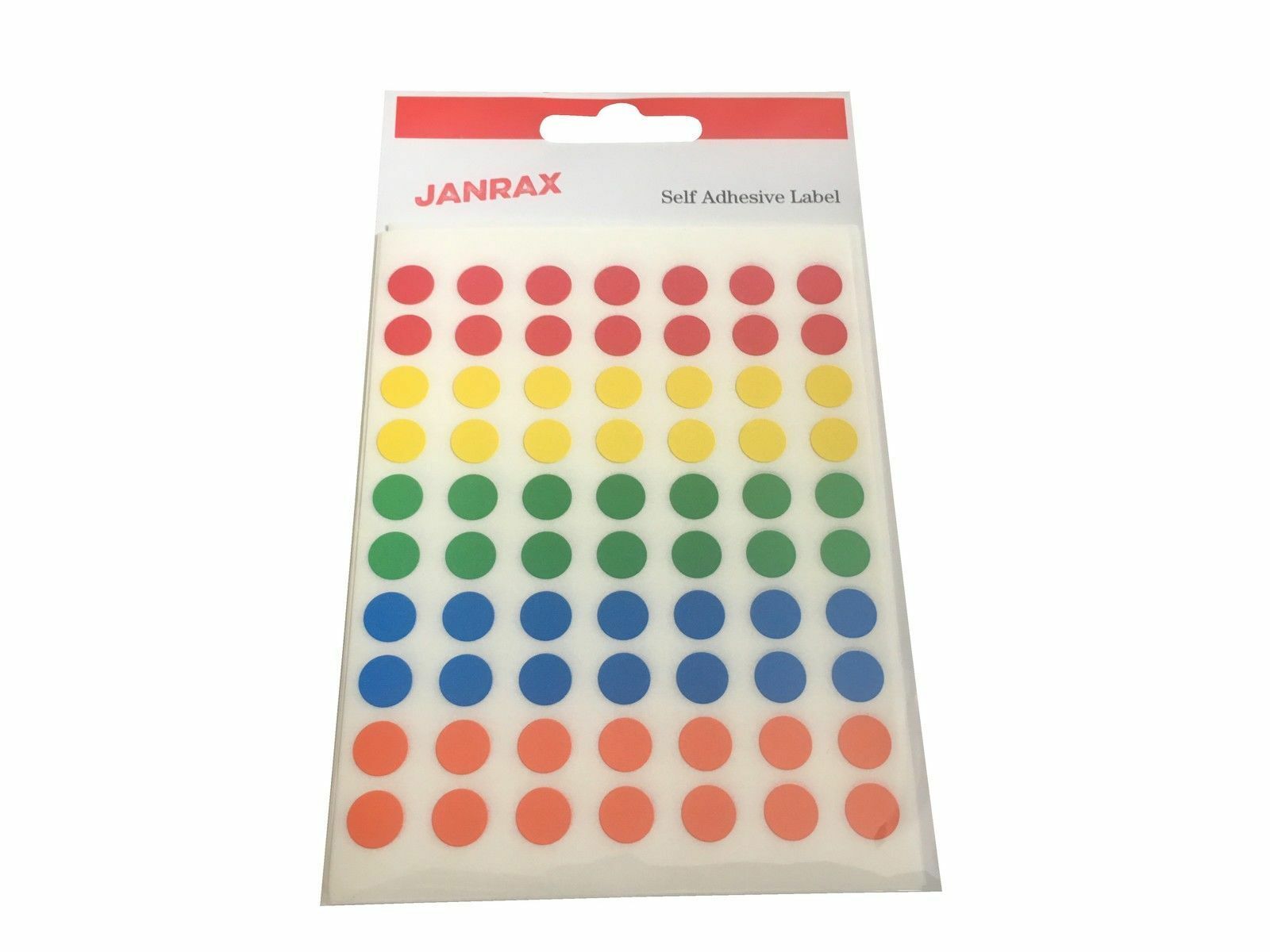 Pack of 560 8mm Self Adhesive Assorted Round Labels by Janrax. Great for Luggage or Parcels, Labelling, Notes, etc. Size 8mm.