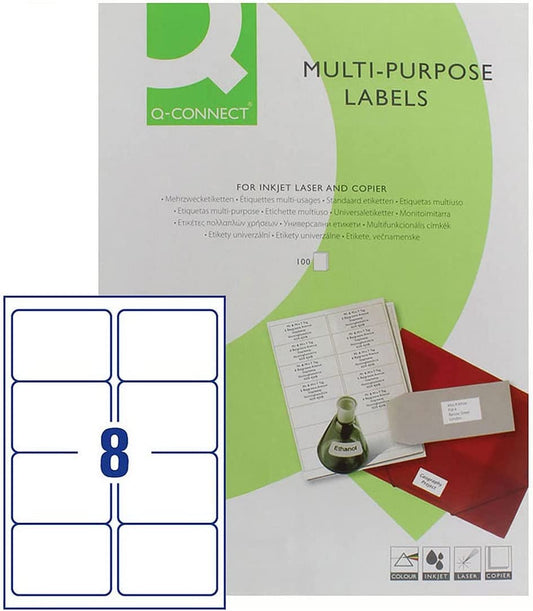 Pack of 800 A4 8 Per Sheet Multipurpose White Labels 99.1 x 67.7mm