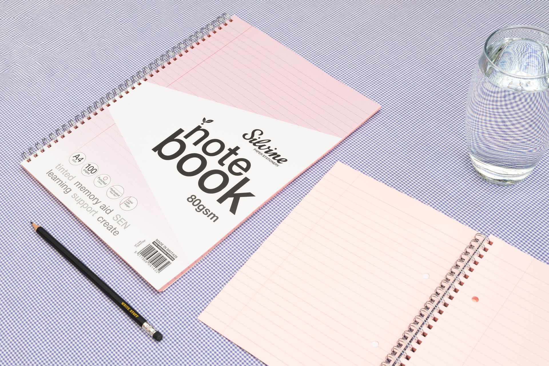 - A5+ 100 Pages Twin Wire SEN Pink Paper Dyslexia Notebook - Lined with Margin