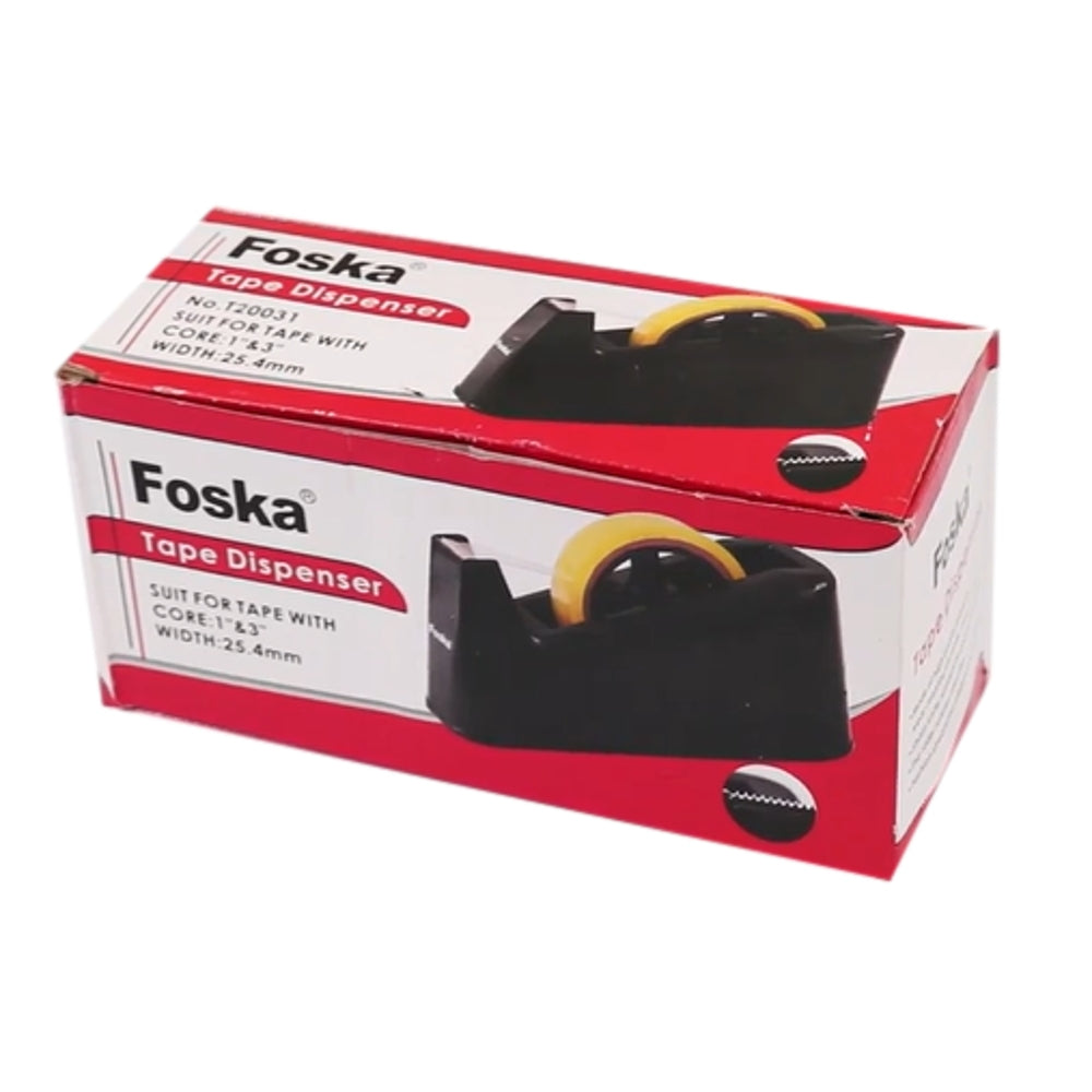 Large Tape Dispenser First Stat by Foska. Colour: Black. Weighted base for easy of tear. Anti Slip Mat at bottom of base. Suitable for standard 18mm width tape.