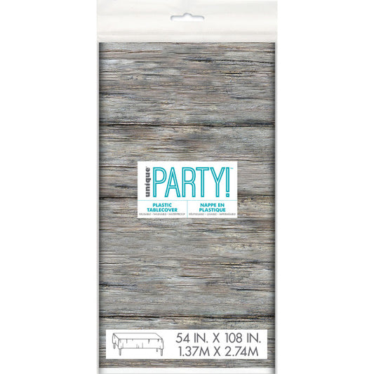 Rustic Wood Rectangular Plastic Table Cover, 54"x108"