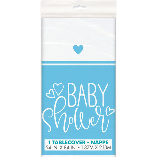 Blue Hearts Baby Shower Rectangular Plastic Table Cover, 54"x84"