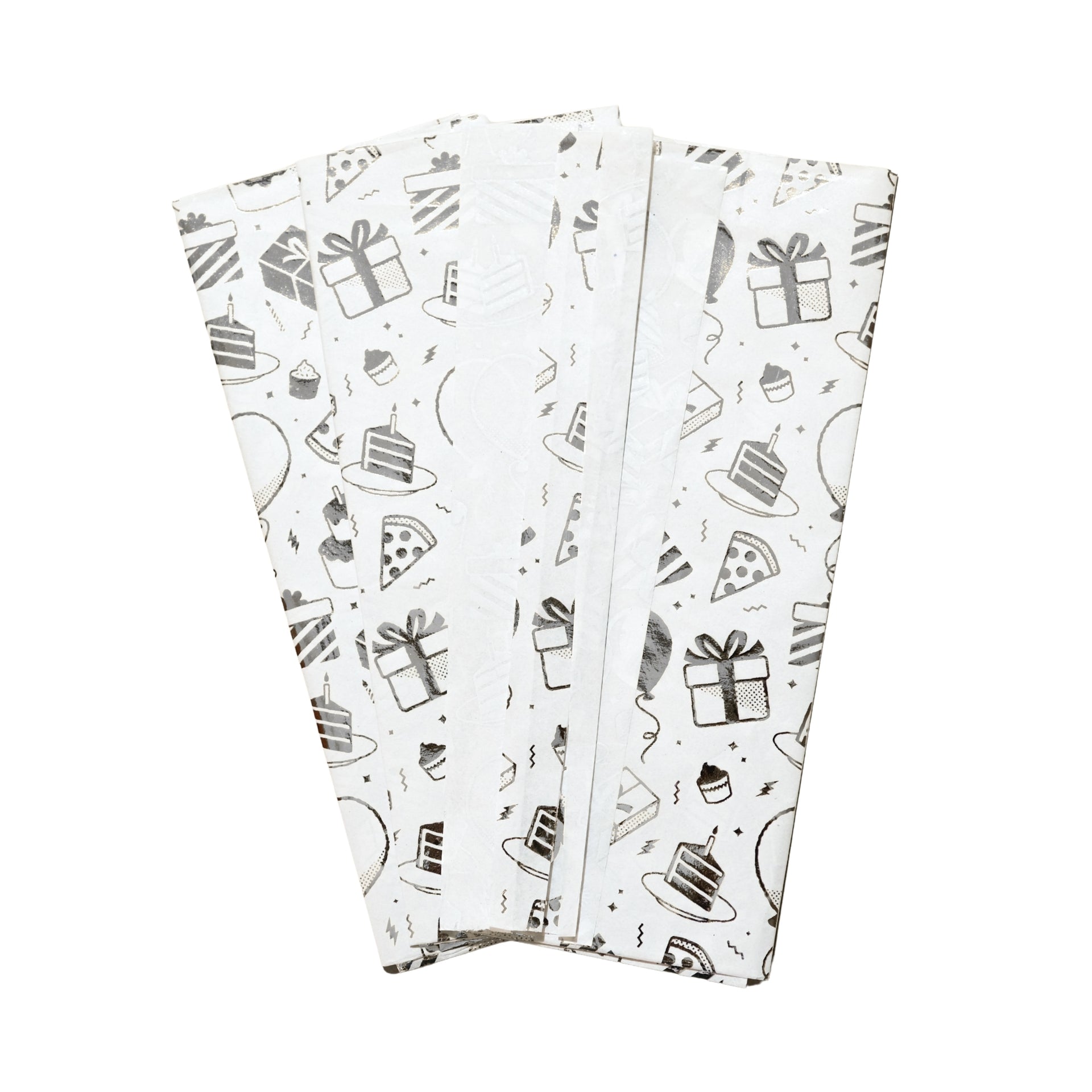 - Pack of 10 Birthday Luxury Silver Metallic Plastic-Free 18gsm Tissue Paper Sheets 50x70cm - Patterned Tissue Paper for Xmas, New Year, Party, Wedding, Birthday Packing Present Gift Box DIY Art Crafts