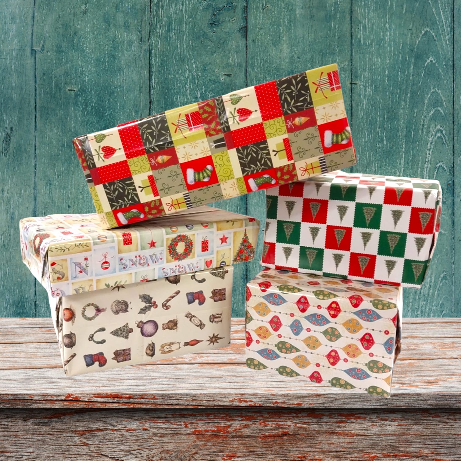 - 10 Sheet of Mix Designer' Quality Soft touch Foiled Christmas Giftwrap and Tags