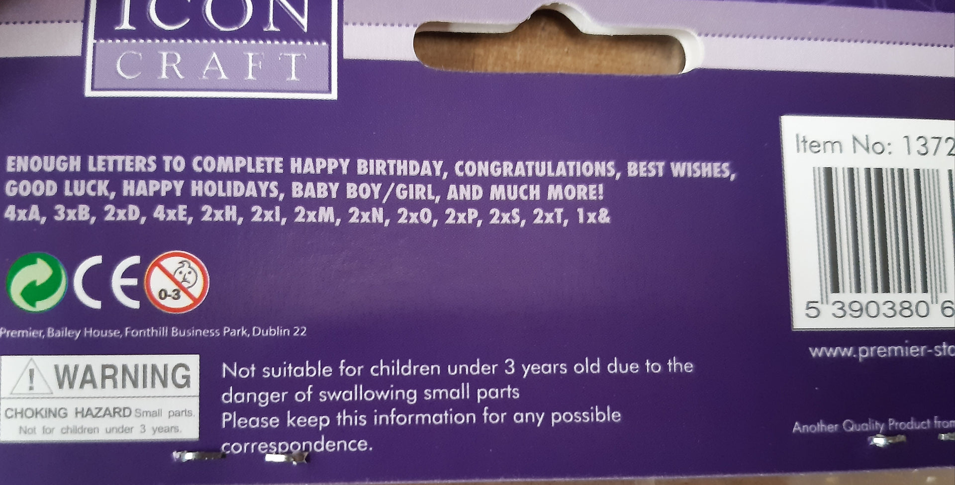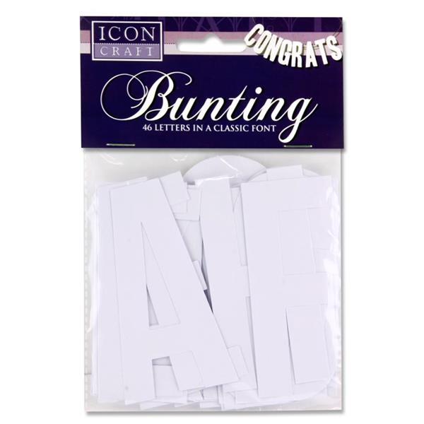100 x 120mm Alphabet Bunting by Icon Craft. Individually cut out letters of the Alphabet. Create your own bunting, posters, signs etc. Letters can be decorated with pens, crayons, felt tips, paint, glitter, feathers, stickers, embellishments - wherever your imagination takes you. 46 Letters in a classic fonts. 2 Assorted colors: White & Black. Letters included, 4xA, 3xB, 2xD, 4xE, 2xH, 2xI, 2xM, 2xN, 2xO, 2xP, 2xS, 2xT, 1x&. One random colour will be supplied.