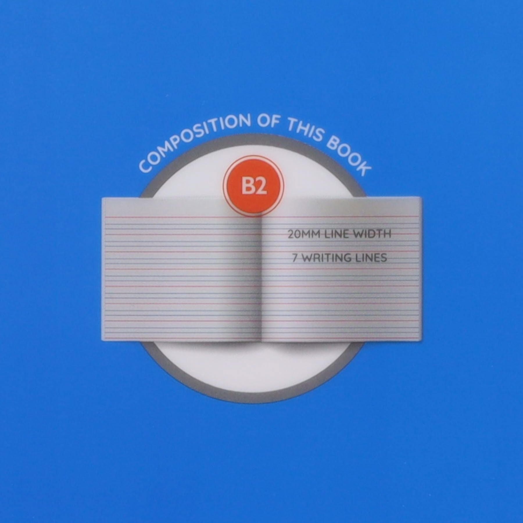 40 Pages B2 Durable Cover Learn To Write Copy Book by Ormond. Wide Ruled Lines with extra Guides. Durable, Wipe Clean Blue Cover. Ruled with 20mm feints. 7 writing lines. 40pg. 16.5x20cm.