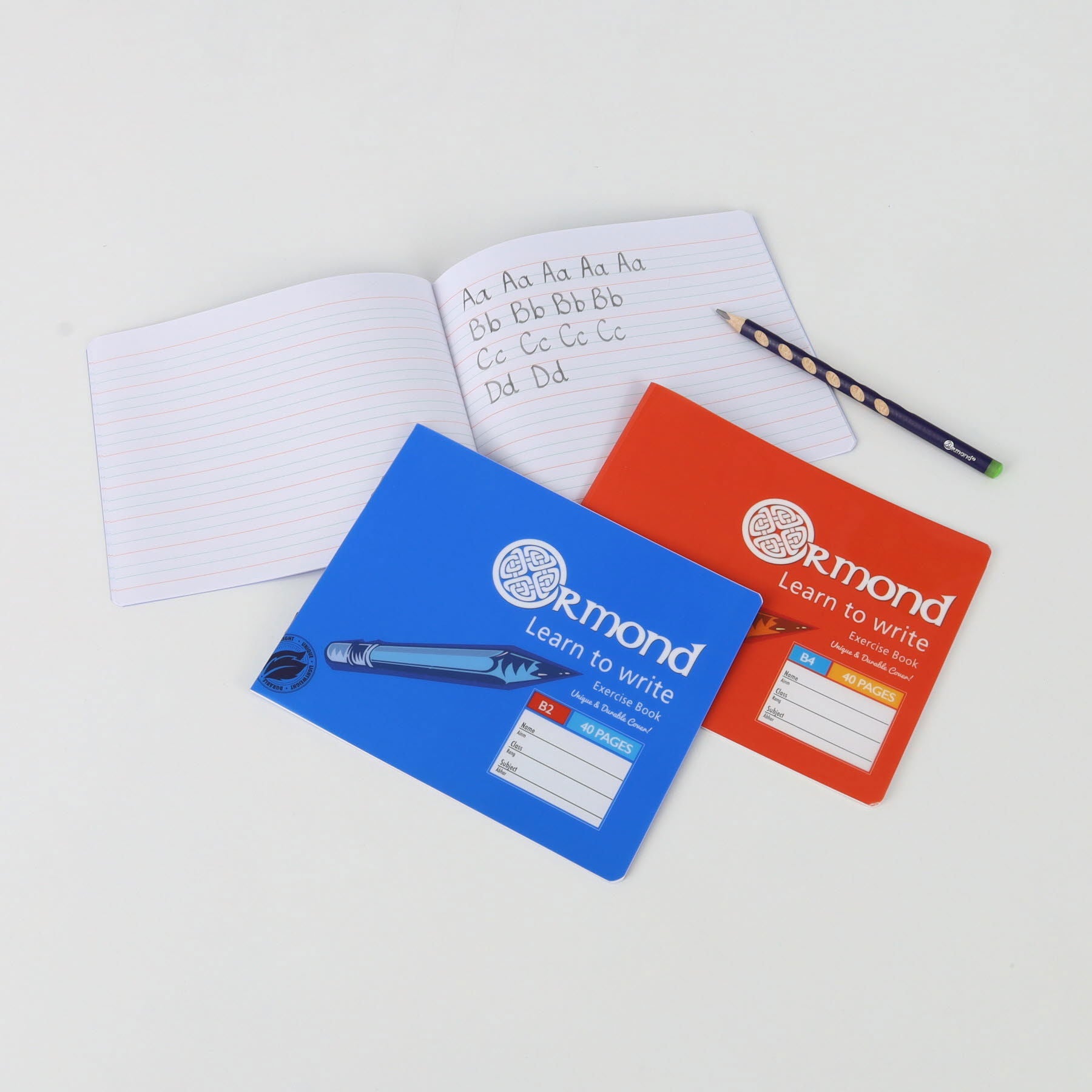 40 Pages B2 Learn To Write Copy Book by Ormond. Exercise Book. Ruled with 20mm feints. 7 writing lines. 40pg. 16.5x20cm.
