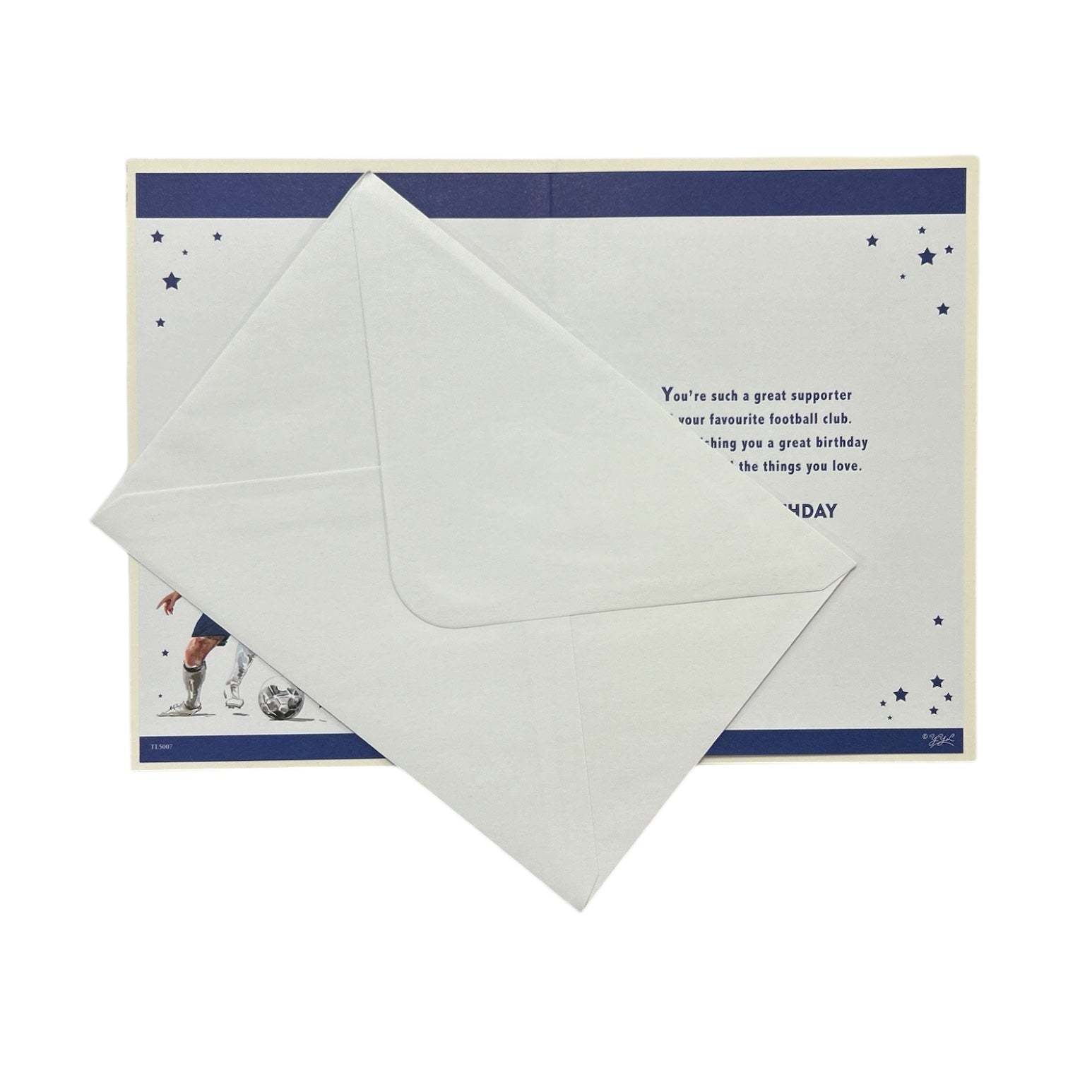 A Man In White and Blue Soccer Uniform Customized Male Birthday Card