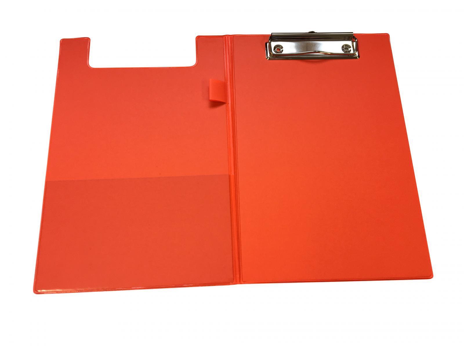 - A5 Neon Orange Foldover Clipboard with Pen Holder
