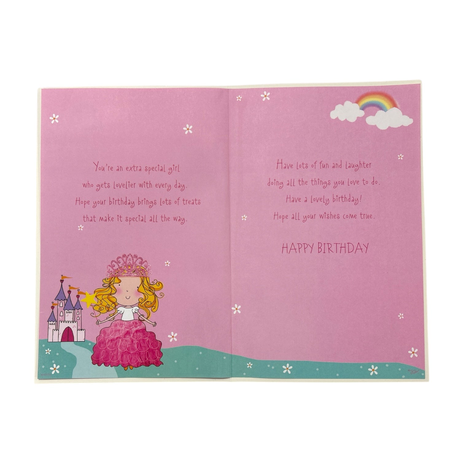 - Age 03 Princess With Magic Wand Juvenile Birthday Card With Badge