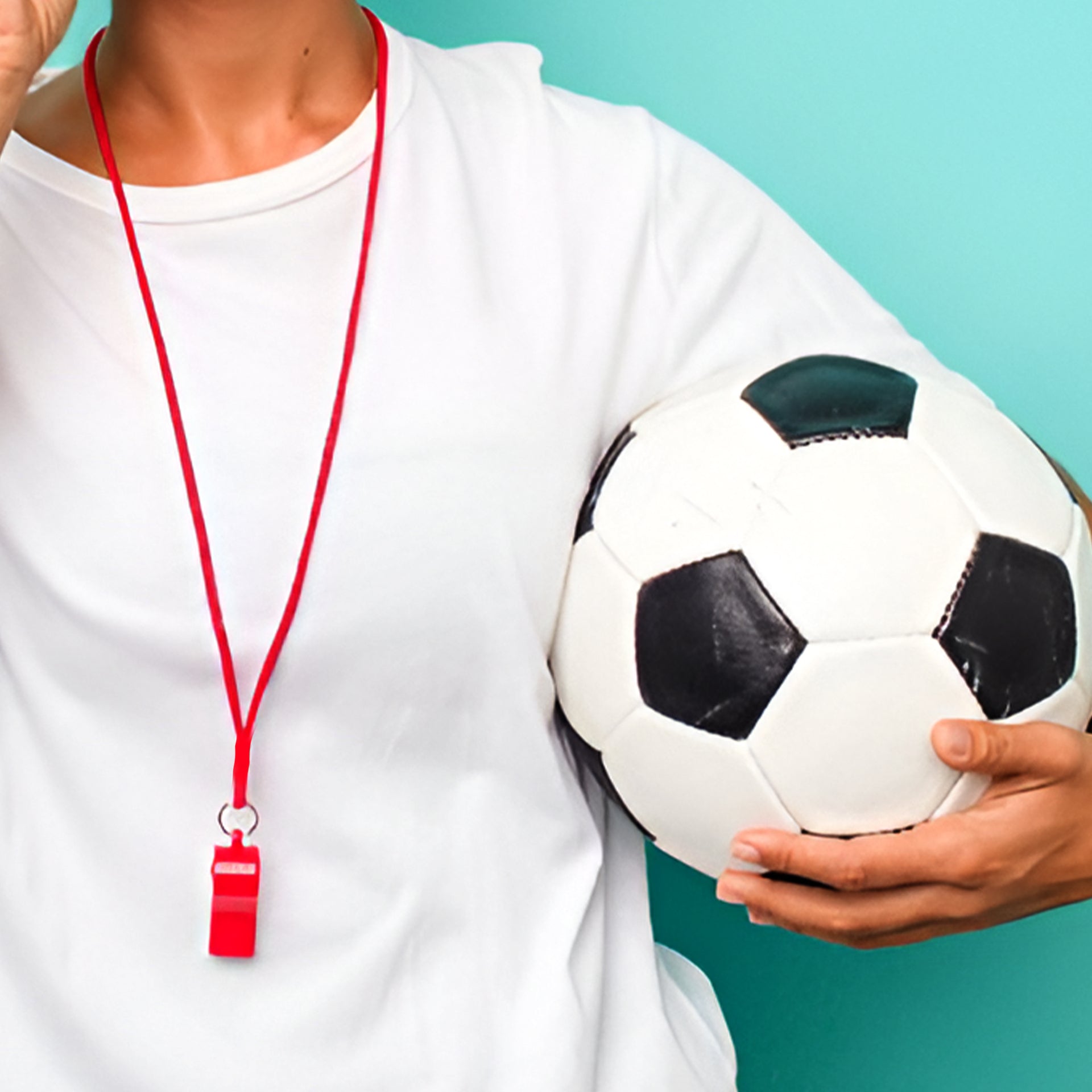 Bag of 100 Purple Plastic Whistles with Lanyard Neck Cord.