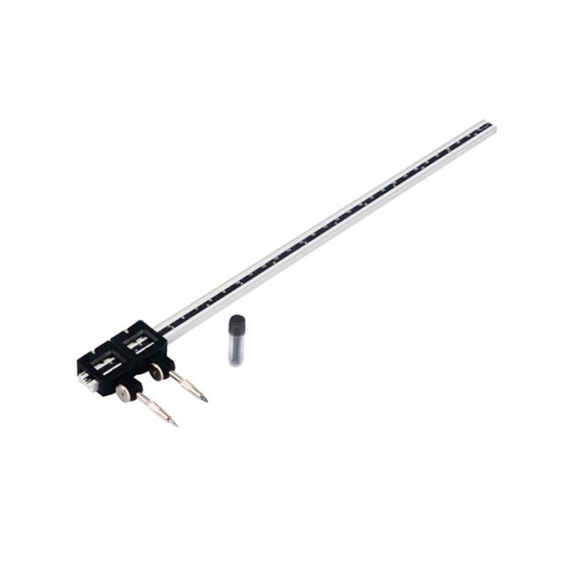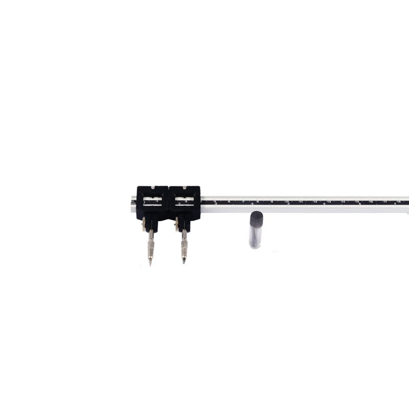 Beam Compass, 10-290mm Students quality nickel plated beam compass with pencil and divider attachments. Contents: 1 container with 2 leads, 1 needle and 1 screw unit. Individually packed in a hanging transparent plastic box.