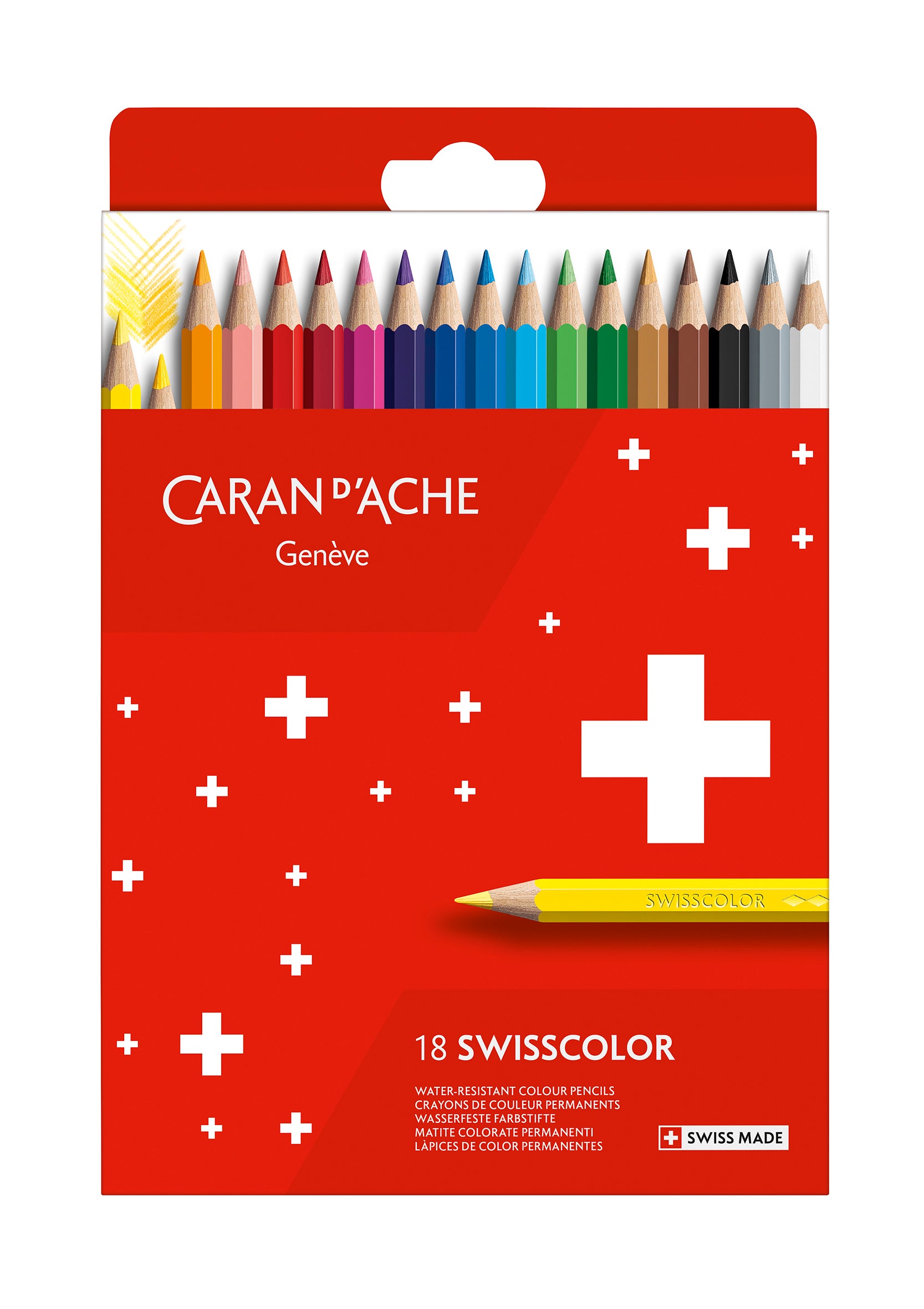 - Box of 18 Swisscolor Permanent Colours Pencils in Cardboard Box