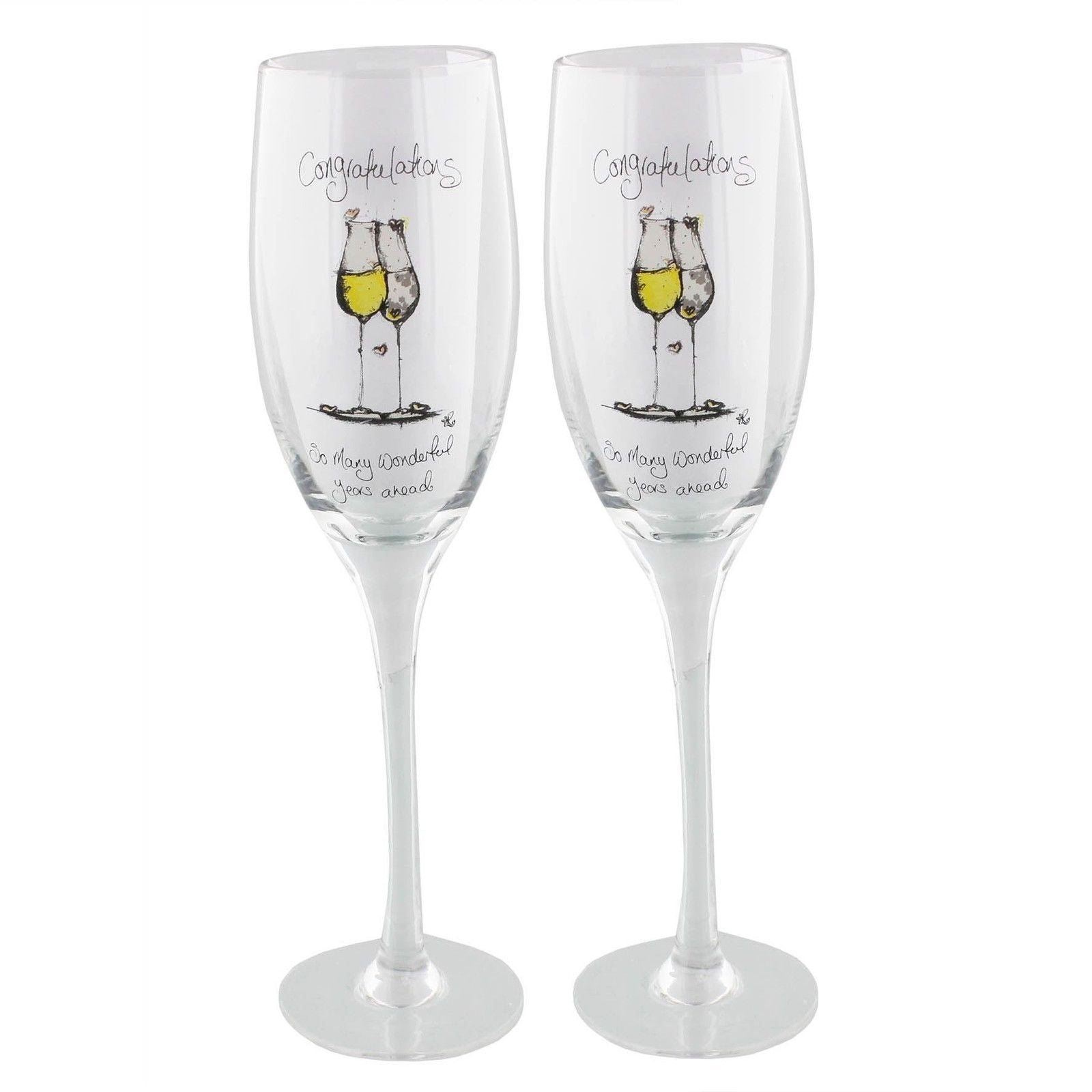 - Boxed Pair of Champagne Flutes Congratulations Tracey Russell Coffee & Cream New