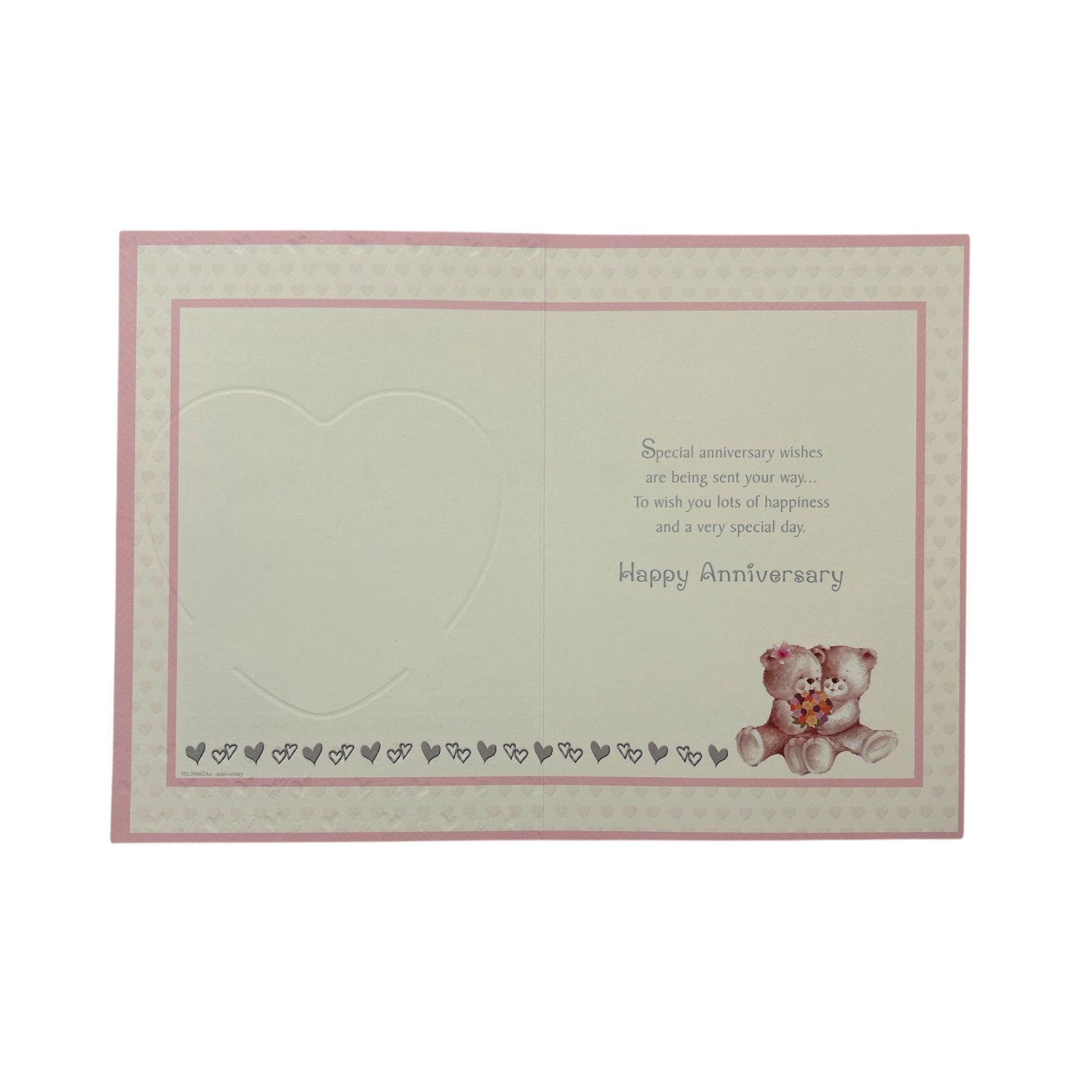 Brother and Sister-in-law Cute Teddies In Pink Heart Anniversary Card