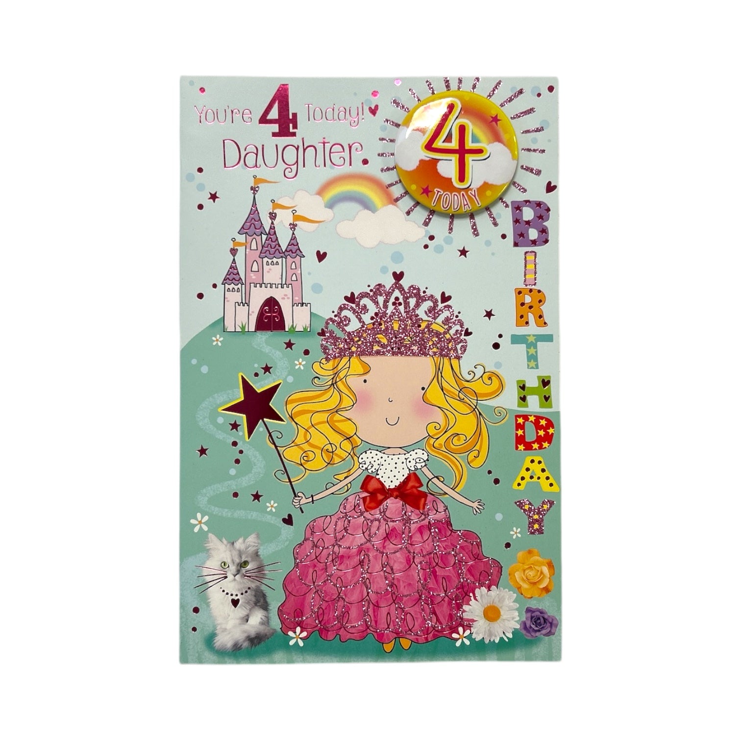- Daughter Age 04 Princess With Magic Wand Juvenile Birthday Card With Badge