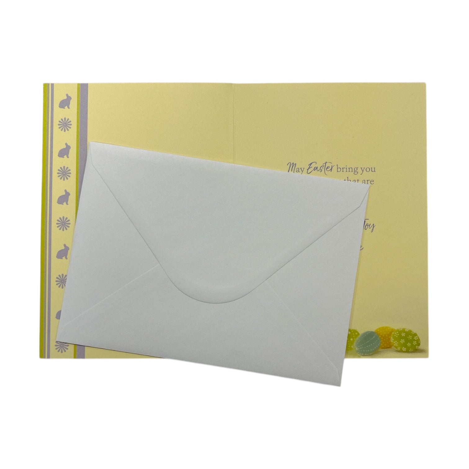 Send warm and cheerful Easter wishes with this beautifully designed Easter card. Featuring a lovely spring flower pot filled with vibrant blooms and Easter eggs decorated in delightful, colorful patterns, this card perfectly captures the joy and renewal of the season. The design is enhanced with embossed details and shimmering foil accents, adding a touch of elegance and charm. Complete with a coordinating envelope, this card is a thoughtful and heartfelt way to share Easter blessings and make someone's day extra special. Card size: Approx. 19.5 x 14 cm.